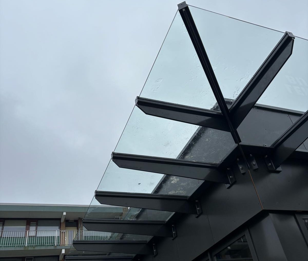 Een glazen luifel combineert functionaliteit met elegantie. Het biedt bescherming tegen regen en wind, terwijl het de entree van een woning of bedrijfspand een moderne, luxe uitstraling geeft.